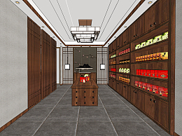新中式茶叶专卖店su草图模型下载