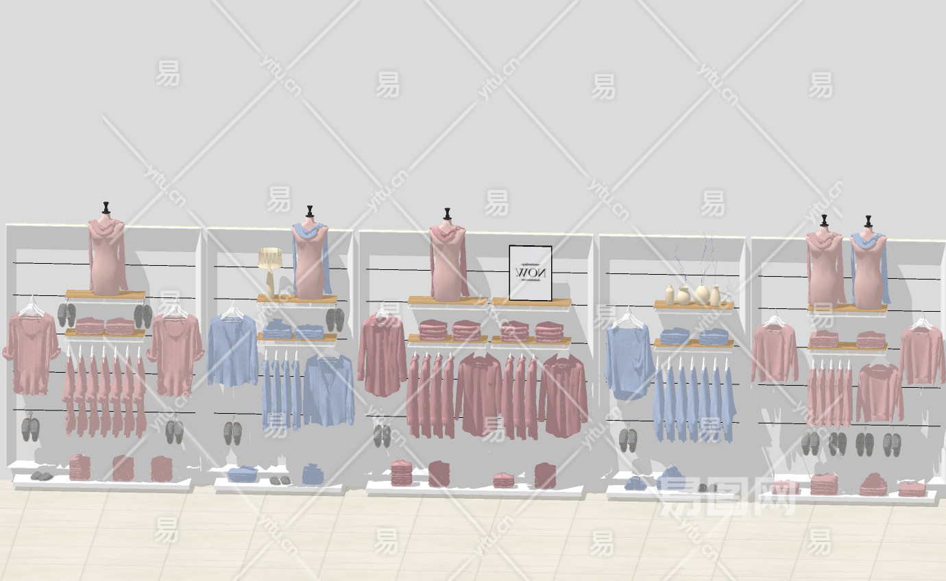 现代服装店货架su草图模型下载