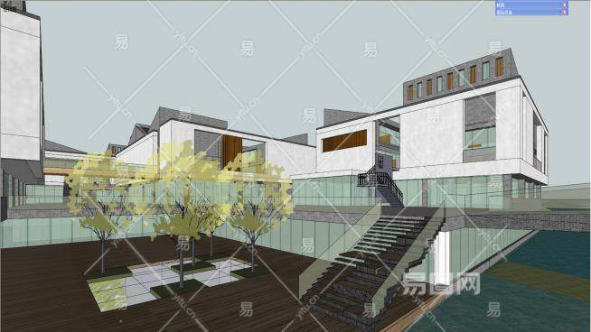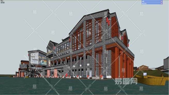 湖北梧桐湖水乡小镇商业街SU模型下载_sketchup草图大师SKP模型