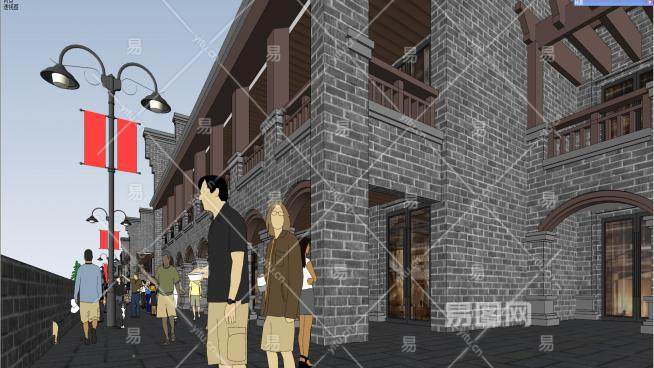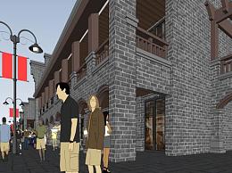 中式安康滨河商业街川渝民国风卓创SU模型下载_sketchup草图大师SKP模型