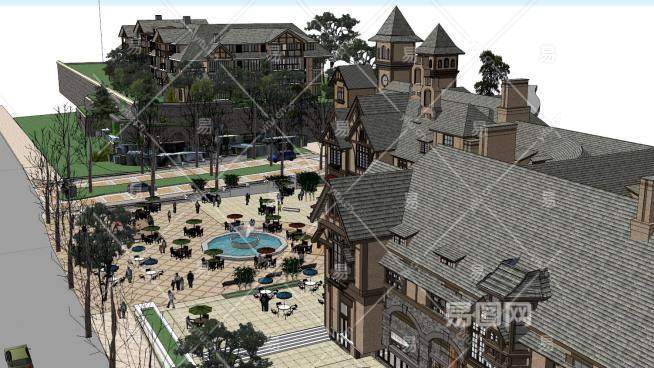 瑞士风情商业街建筑SU模型下载_sketchup草图大师SKP模型