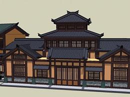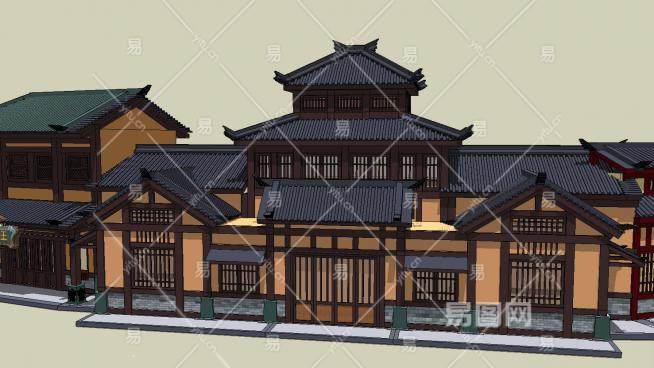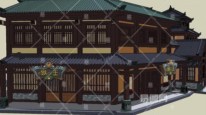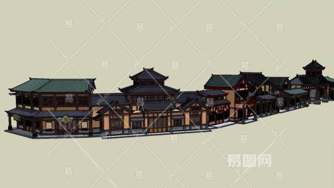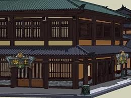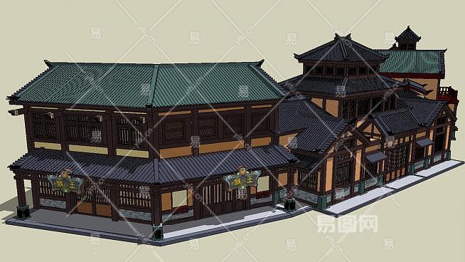 中式商业街转角商铺SU模型下载_sketchup草图大师SKP模型