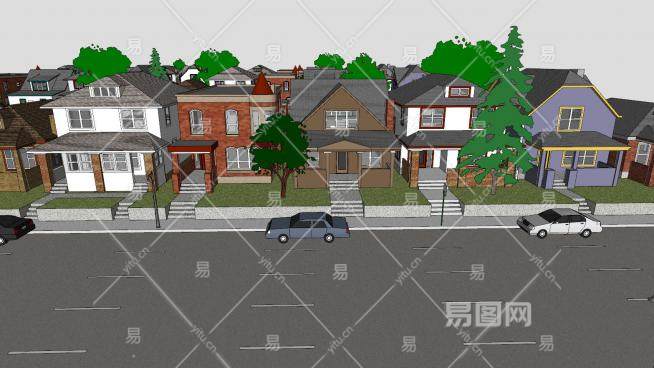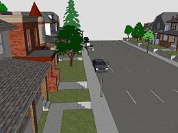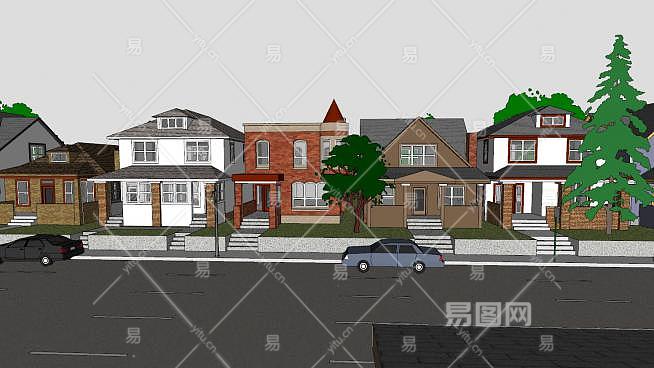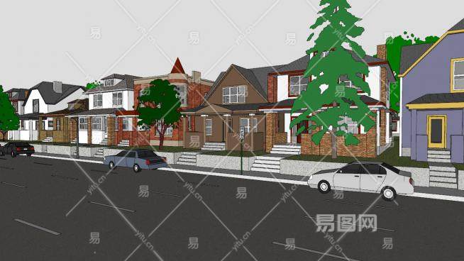 这是城市社区商业街SU模型,典型的大城市街区,由20世纪早期的单户住宅组成。城市社区商业街SU模型下载_sketchup图大师SKP模型
