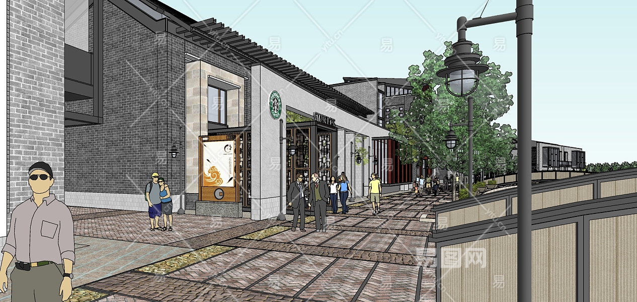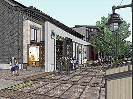 122新中式商业古街古镇,沿街商业,新中式度假小镇,商业街区,广场景观su草图模型下载