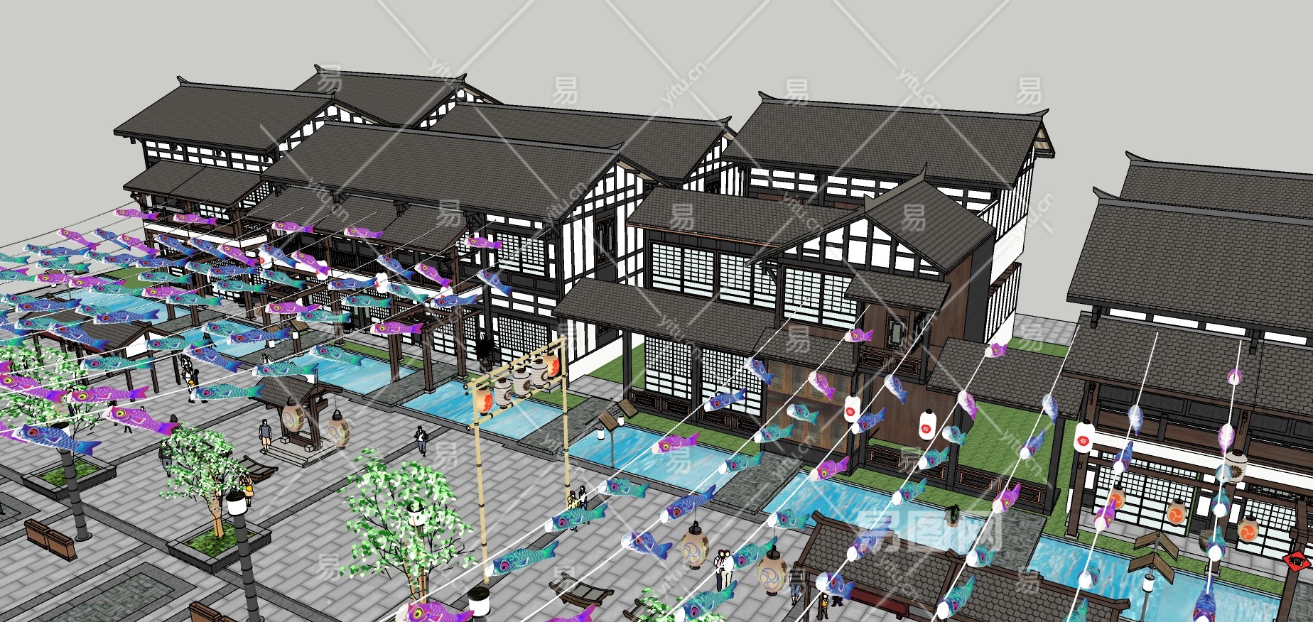 389日式风格商业街,步行街,日式小酒馆,居酒屋,沿街零售商店,旅游景点su草图模型下载