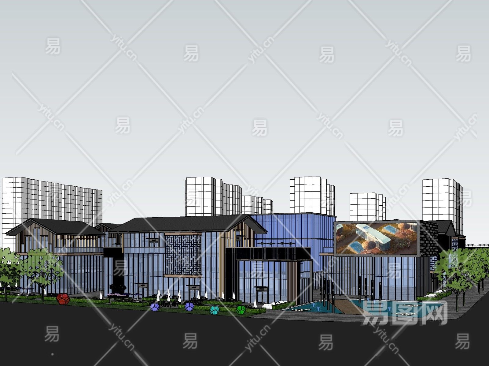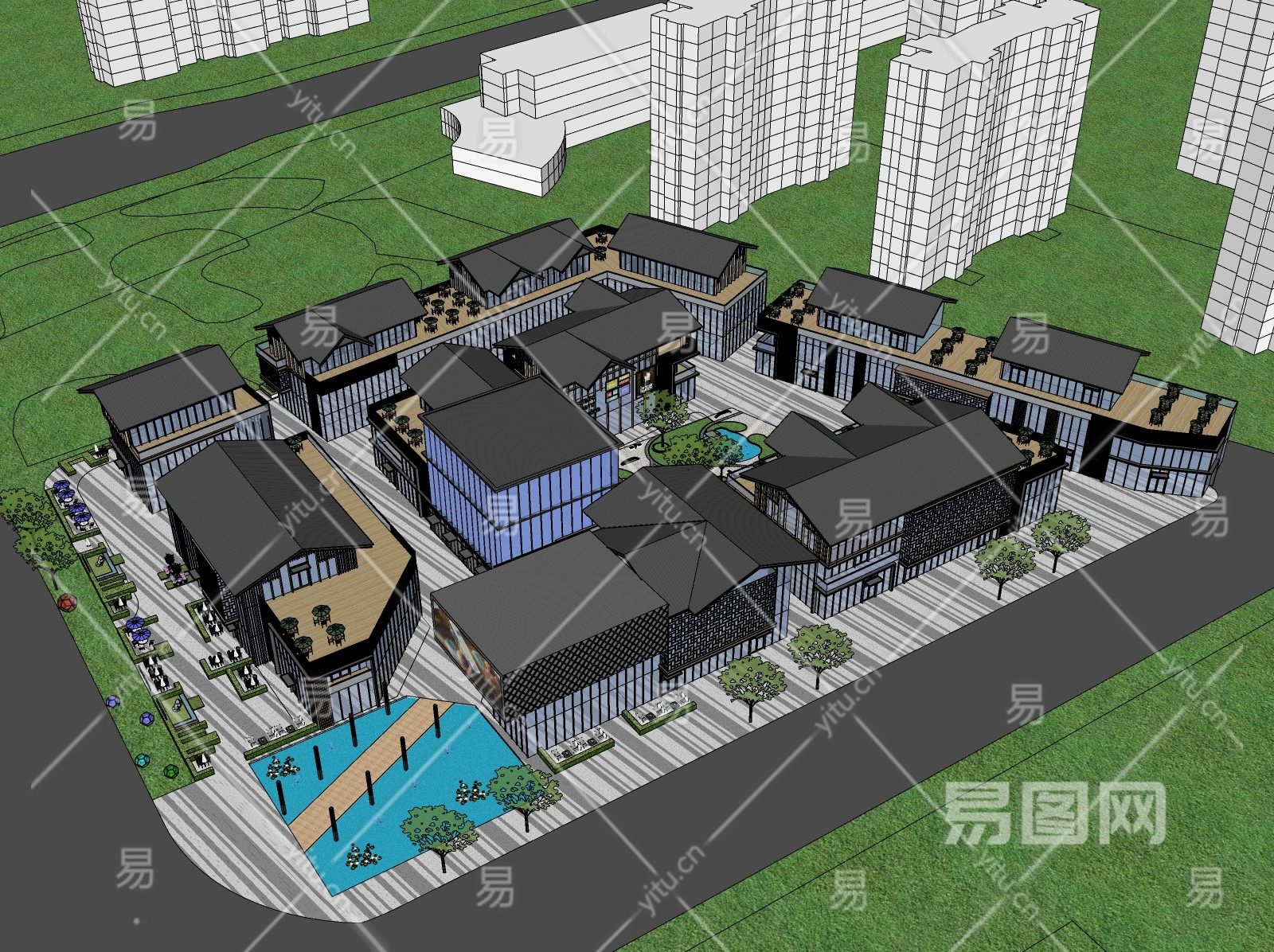 当前的位置:首页 > sketchup > sketchup模型 > 建筑 > 商业综合 > 新中式商业街区