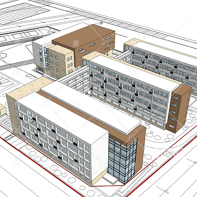 现代教学楼su模型