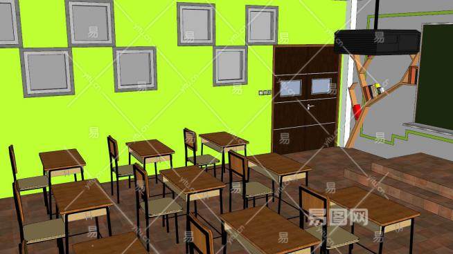 这是学校教室室内书架课桌SU模型,教室〔jiào shì〕,就是由一个很大的房间,前面为讲台,靠讲台的墙上有黑板,这里是老师上课、布置作业方。学校教室室内书架课桌SU模型下载_sketchup图大师SKP模型