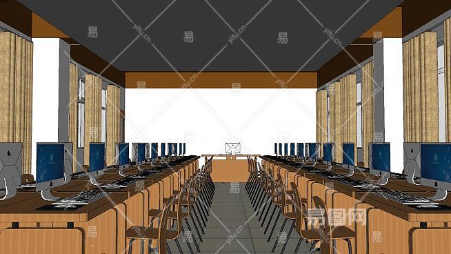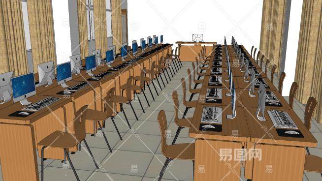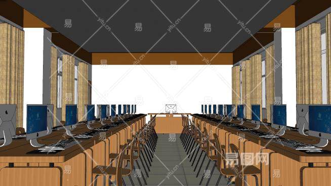 电脑机房电脑室SU模型下载_sketchup草图大师SKP模型