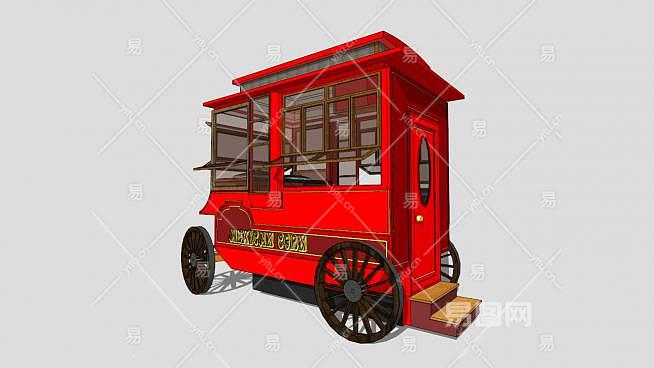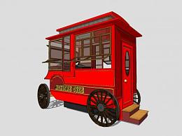 红色车厢甜品临时售卖亭SU模型下载_sketchup草图大师SKP模型