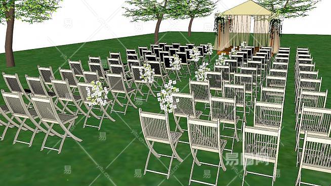 这是婚礼会场su模型,户外婚礼的场装饰布置,是婚礼成败的一个关键环节。必要的舞台背景装饰,增添气氛,烘托效果的场景布置,音响,灯光的安排。婚礼会场su模型下载_sketchup图大师SKP模型