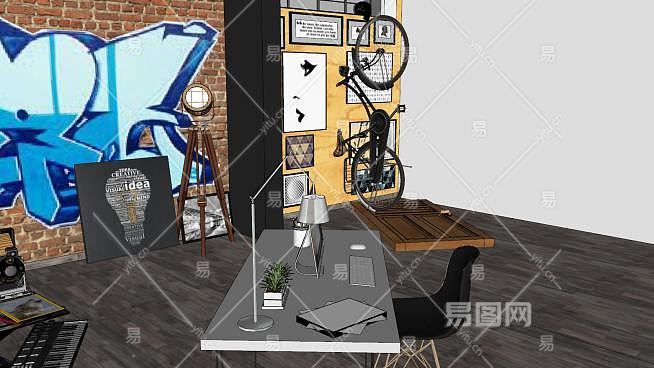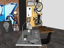 工业风格办公室SU模型下载_sketchup草图大师SKP模型