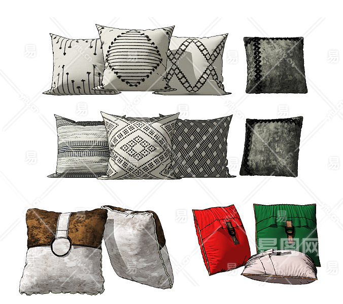 现代布艺抱枕,靠包,靠垫su草图模型下载