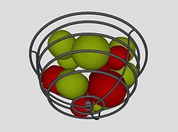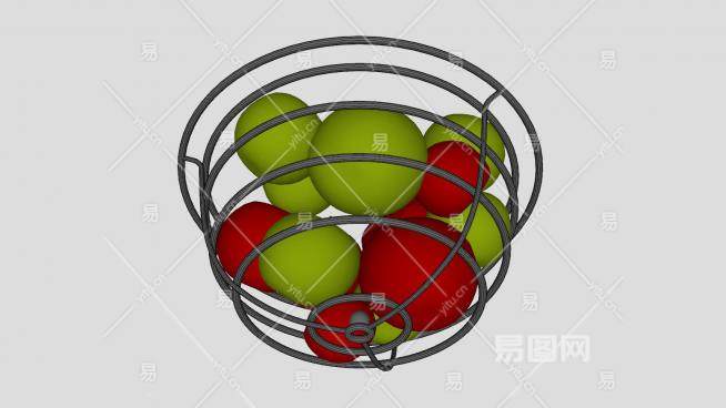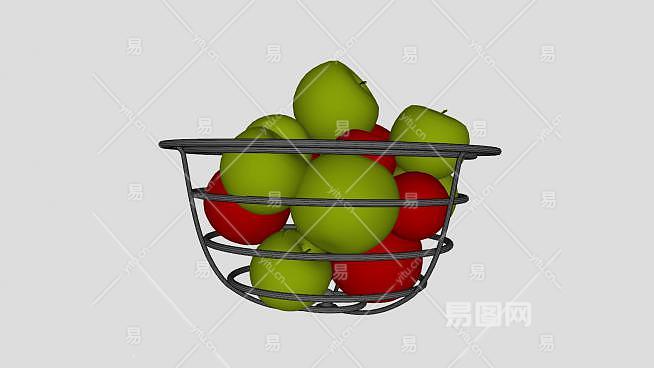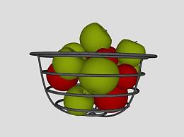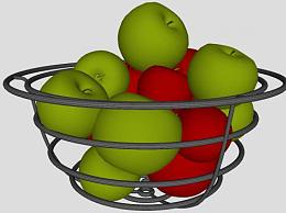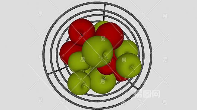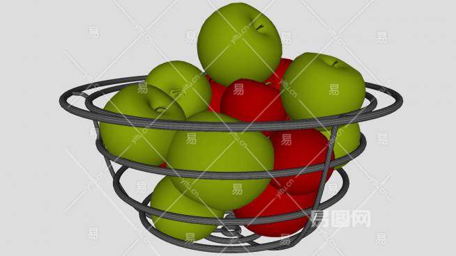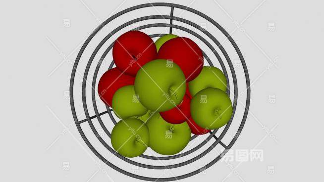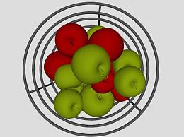 金属果盆中的青红色苹果SU模型下载_sketchup草图大师SKP模型