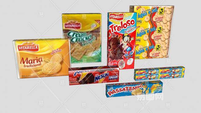 这是纸盒包装饼干系列SU模型,以小麦粉(可添加糯米粉、淀粉等)为主要原料,加入(或不加入)糖、油脂及其他原料,经调粉(或调浆)、成形、烘烤等工艺制成的口感酥松或松脆的食品。纸盒包装饼干系列SU模型下载_sketchup图大师SKP模型