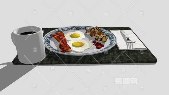 这是西餐食物刀叉咖啡鸡蛋牛排SU模型,西餐,顾名思义是西方国家的餐食。西方国家,是相对于东亚而言的欧洲白世界文化圈,西餐的准确称呼应为欧洲美食,或欧式餐饮。西餐食物刀叉咖啡鸡蛋牛排SU模型下载_sketchup图大师SKP模型