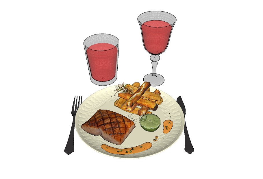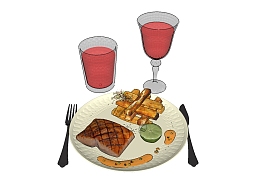 现代牛排饮料草圖大師模型,食品sketchup模型下載
