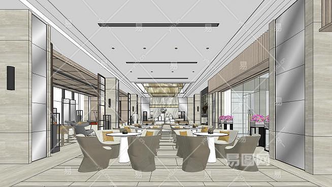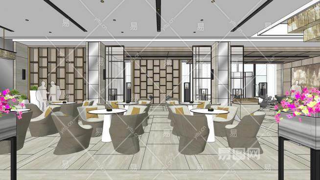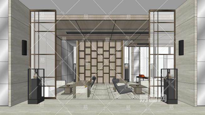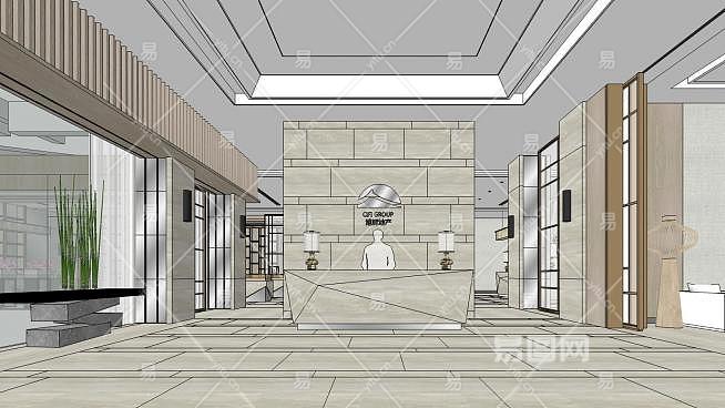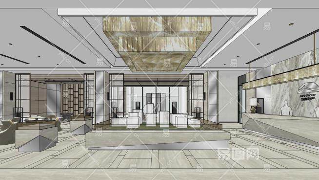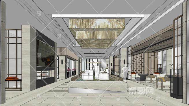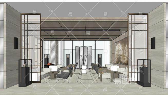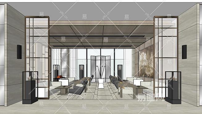 现代风格售楼处工装SU模型下载_sketchup草图大师SKP模型