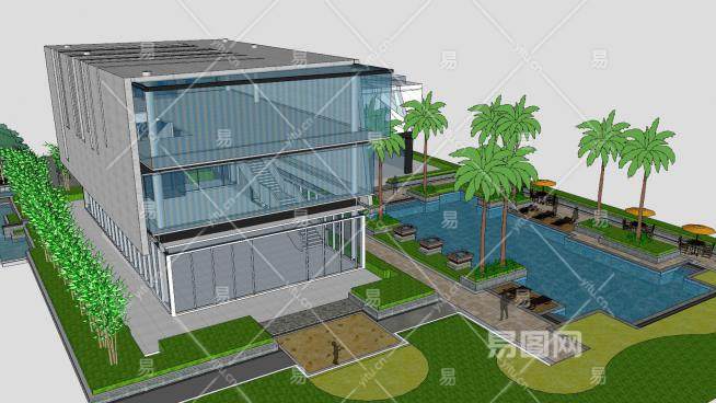 现代风格售楼处外观SU模型下载_sketchup草图大师SKP模型