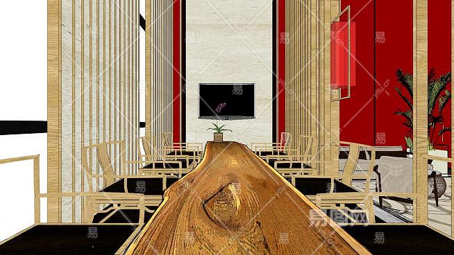 新中式售楼处室内SU模型下载_sketchup草图大师SKP模型