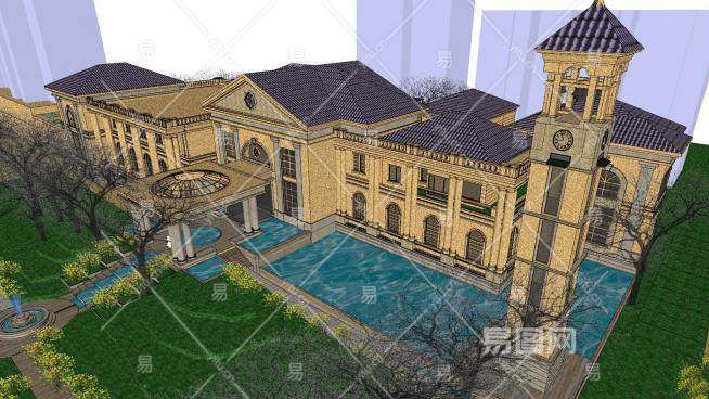 欧式小区售楼部SU模型下载_sketchup草图大师SKP模型