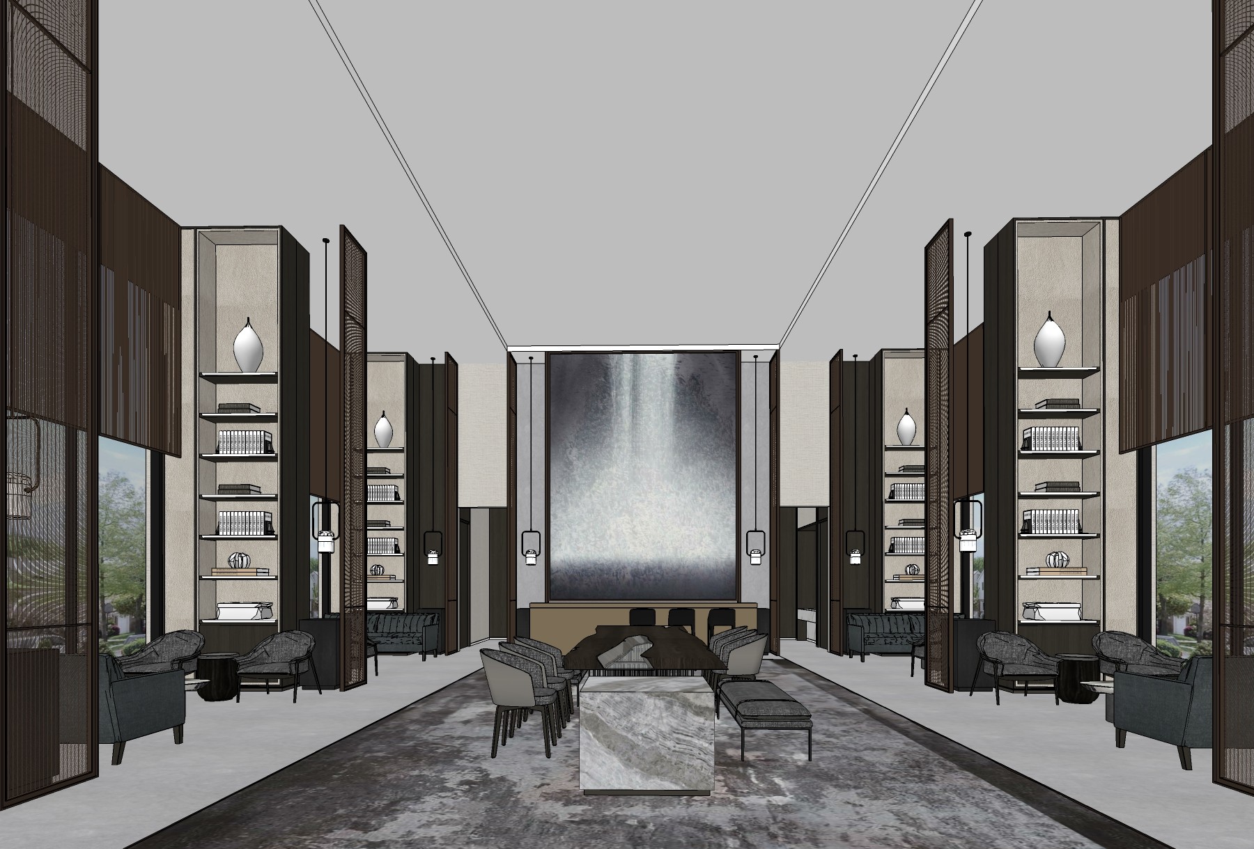 • 中式售楼处sketchup模型,销售中心skp模型下载