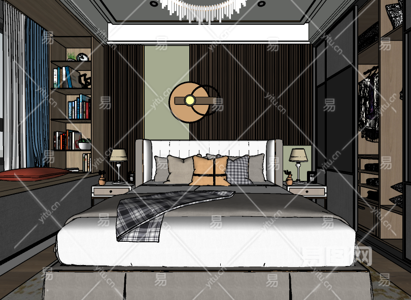 当前的位置:首页 > sketchup > sketchup模型 > 床具 > 双人床 > 现代卧室+双人床+床头柜组合整体模型