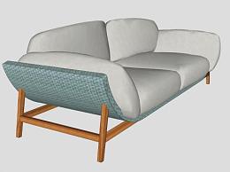 现代简约木制软短沙发家具SU模型下载_sketchup草图大师SKP模型