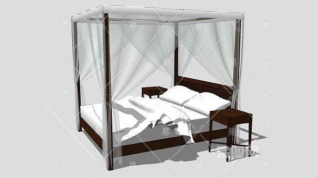 蚊帐双人床床铺SU模型下载_sketchup草图大师SKP模型