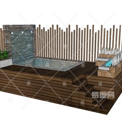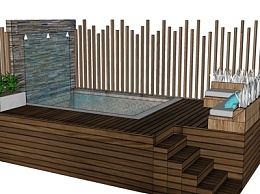 现代实木平台水景墙小品su模型