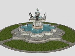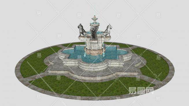 这是狮欧式流喷泉SU模型,喷泉是由工构筑的整形或天然泉池中,以喷射优美的姿,供们观赏的景。狮欧式流喷泉SU模型下载_sketchup图大师SKP模型