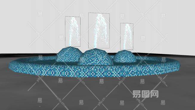 马赛克瓷砖喷喷泉水池SU模型下载_sketchup草图大师SKP模型