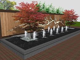 中式喷泉水景景观墙SU模型下载_sketchup草图大师SKP模型