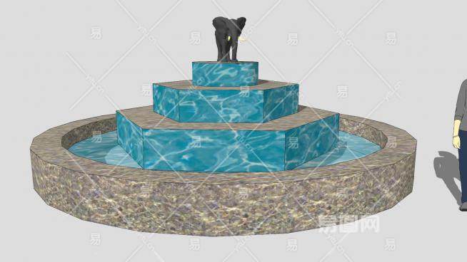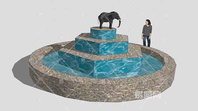 大象雕塑叠层喷泉SU模型下载_sketchup草图大师SKP模型
