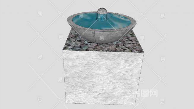 基座上的庭院喷泉SU模型下载_sketchup草图大师SKP模型