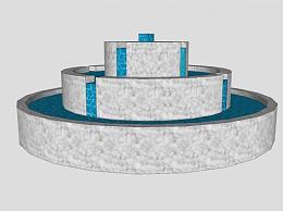 圆形十字流水喷泉SU模型下载_sketchup草图大师SKP模型