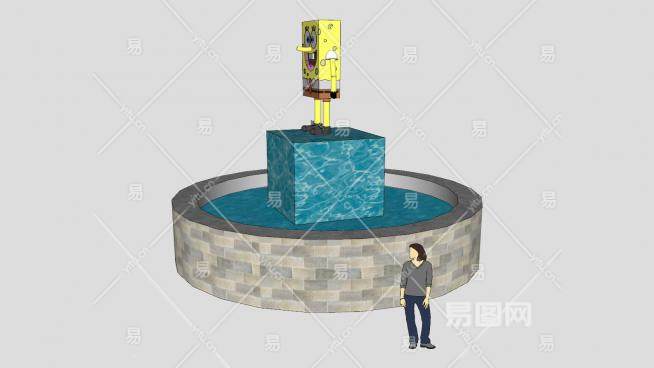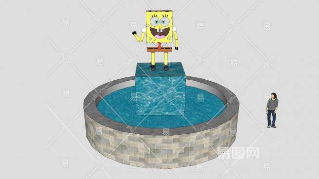 海绵宝宝流水喷泉SU模型下载_sketchup草图大师SKP模型