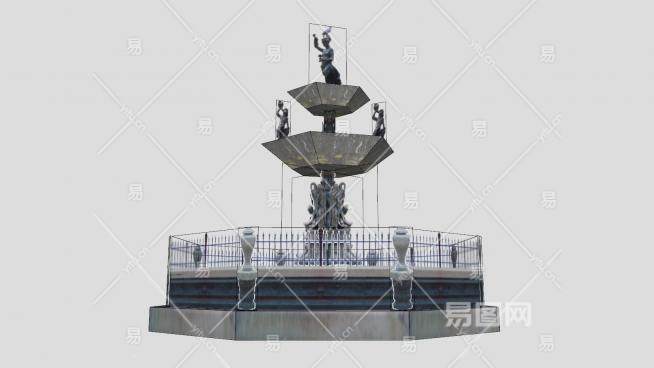 这是庭院广场喷泉SU模型,喷泉是由工构筑的整形或天然泉池中,以喷射优美的姿,供们观赏的景。庭院广场喷泉SU模型下载_sketchup图大师SKP模型