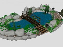 庭院池塘景观小品SU模型下载_sketchup草图大师SKP模型