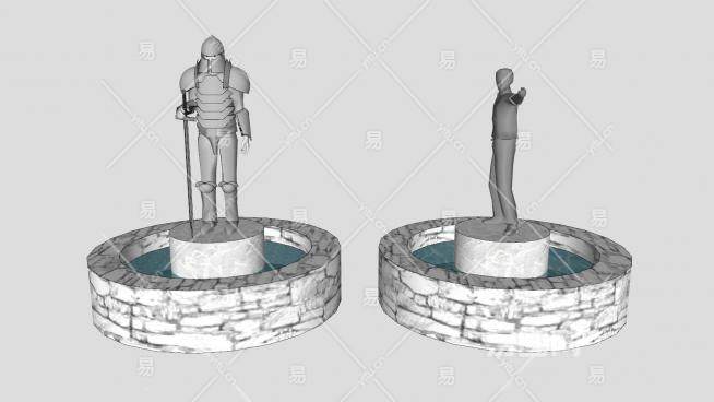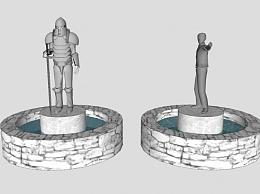 欧式铠甲武士人物雕塑喷泉SU模型下载_sketchup草图大师SKP模型