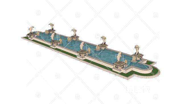 这是新中式海豚雕塑喷泉SU模型,喷泉是一种将或其他液体经过一定压力通过喷喷洒出来具有特定形状的组合体,提供压的一般为泵。新中式海豚雕塑喷泉SU模型下载_sketchup图大师SKP模型