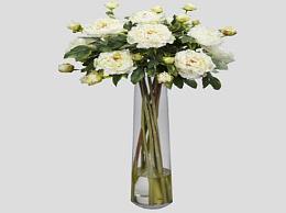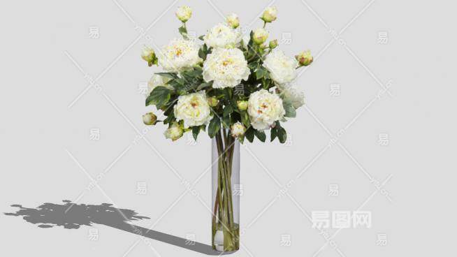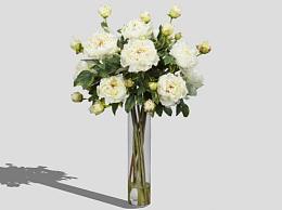 圆柱玻璃花瓶白牡丹花卉SU模型下载_sketchup草图大师SKP模型