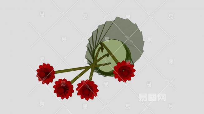 绿色透明玻璃花瓶红色花朵SU模型下载_sketchup草图大师SKP模型