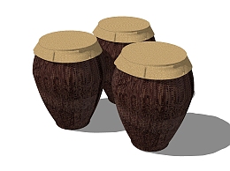 中式陶罐组合草图大师模型,陶罐su模型下载