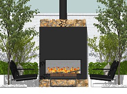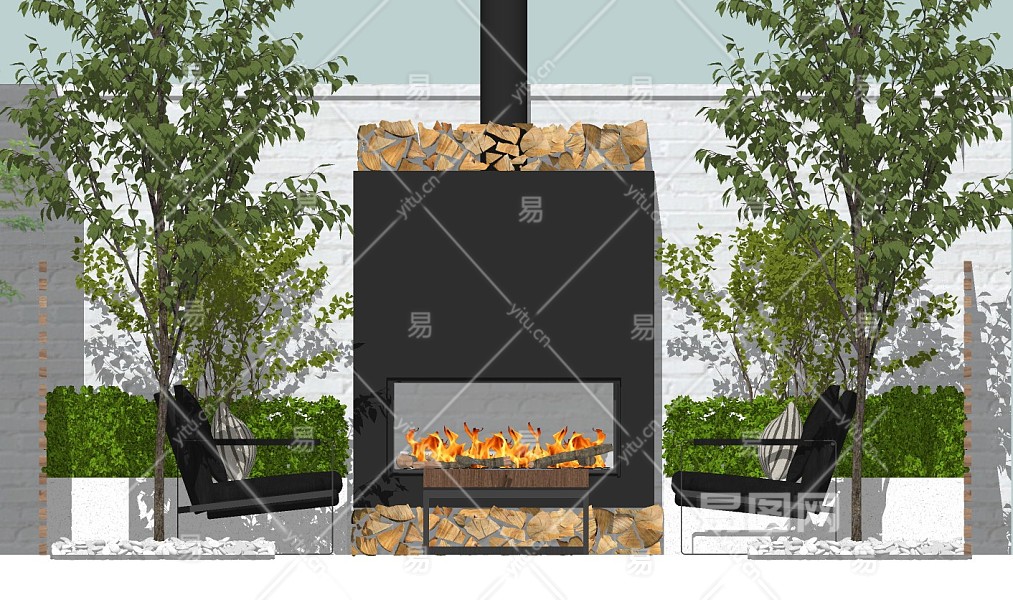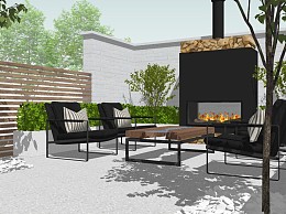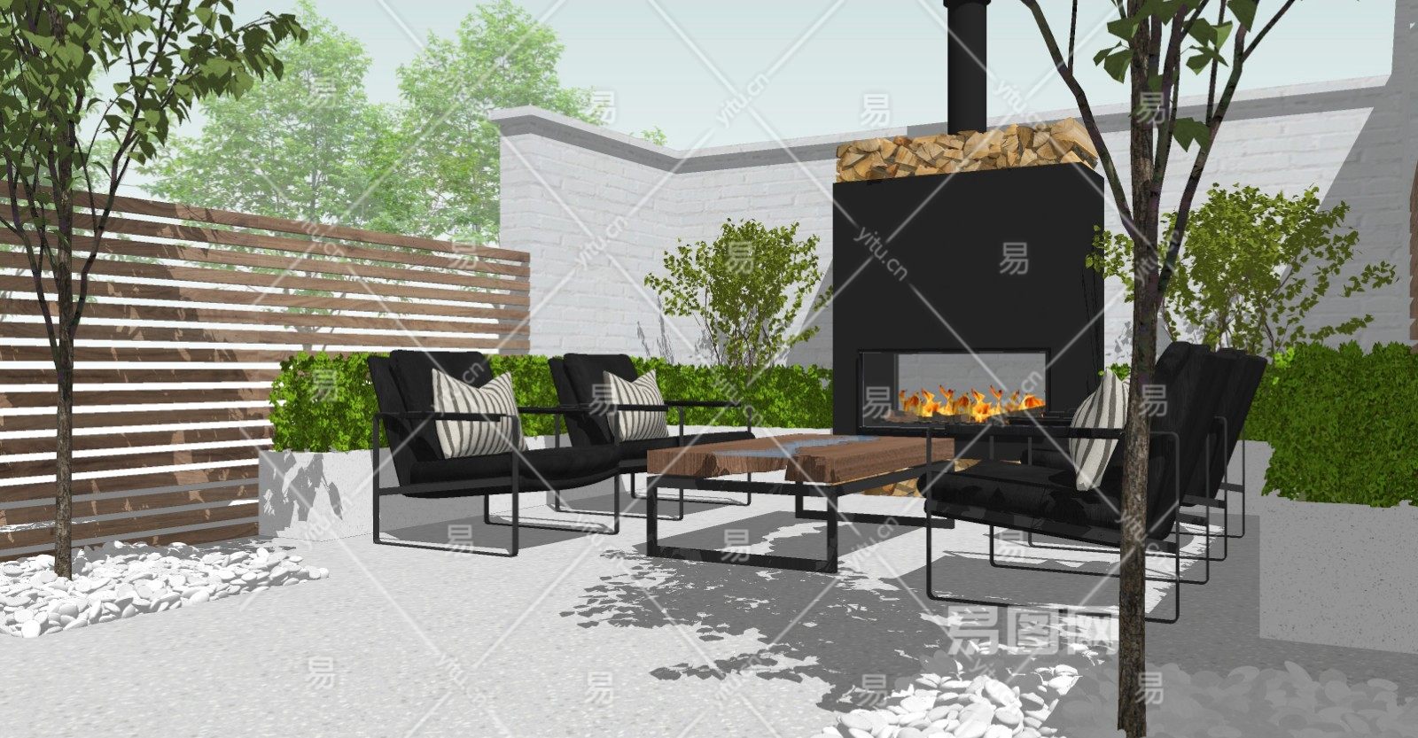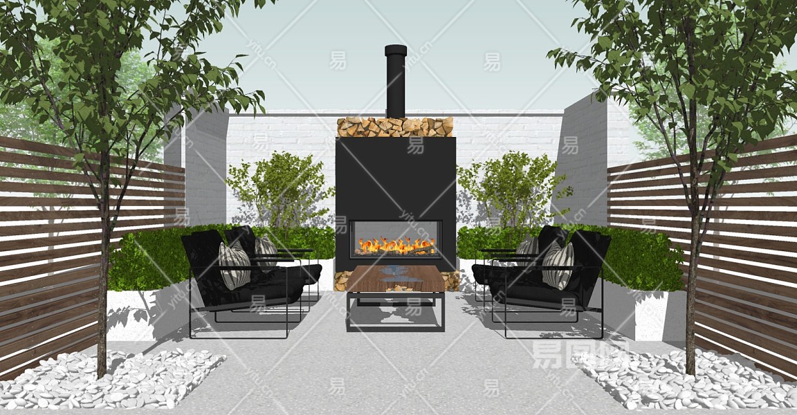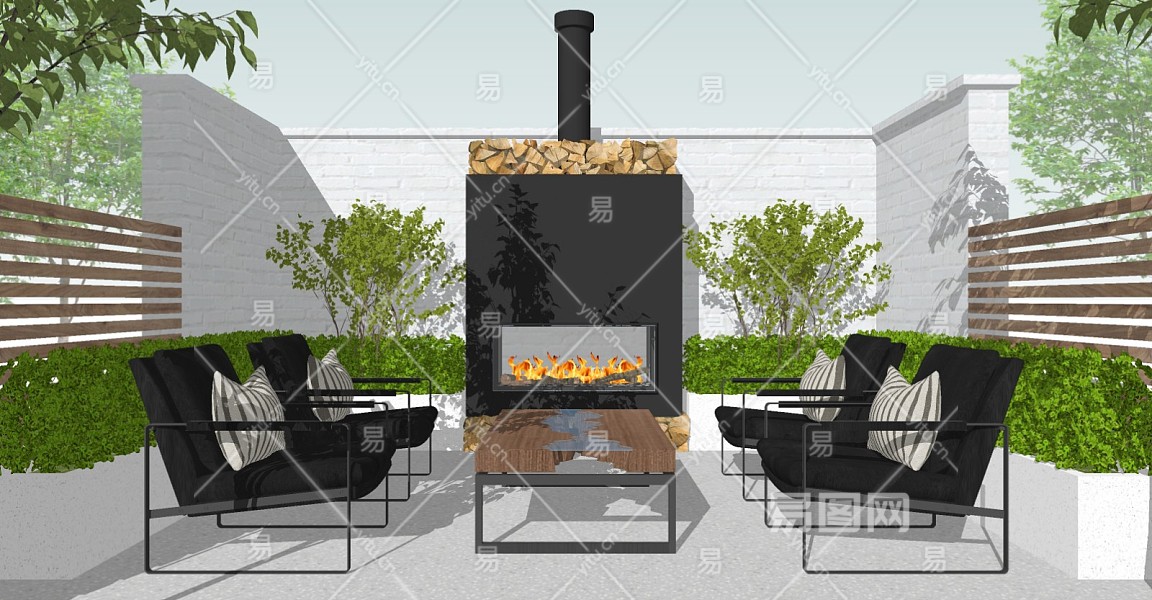 北欧庭院景观 户外桌椅沙发 庭院围栏 植物盆栽 壁炉