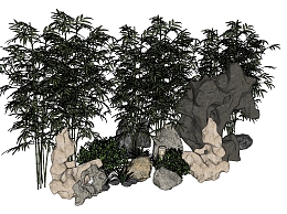 36中式竹子景观石头 绿植 竹子假山组合 太湖石 中式景观假山泰山石 枯山水su草图模型下载