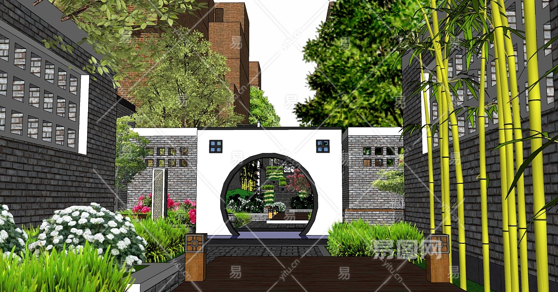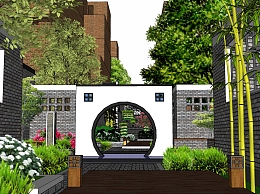 庭院景观庭院景观su草图模型下载