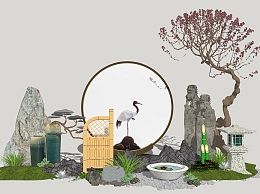 44新中式禅意庭院景观 禅意枯山水园艺小品 景观树绿植石头沙子 拴马石 石灯 假山石头 石狮子 竹子 景观树 佛 竹子组合 仙鹤 中式禅意摆件 荷花水缸 陶罐su草图模型下载