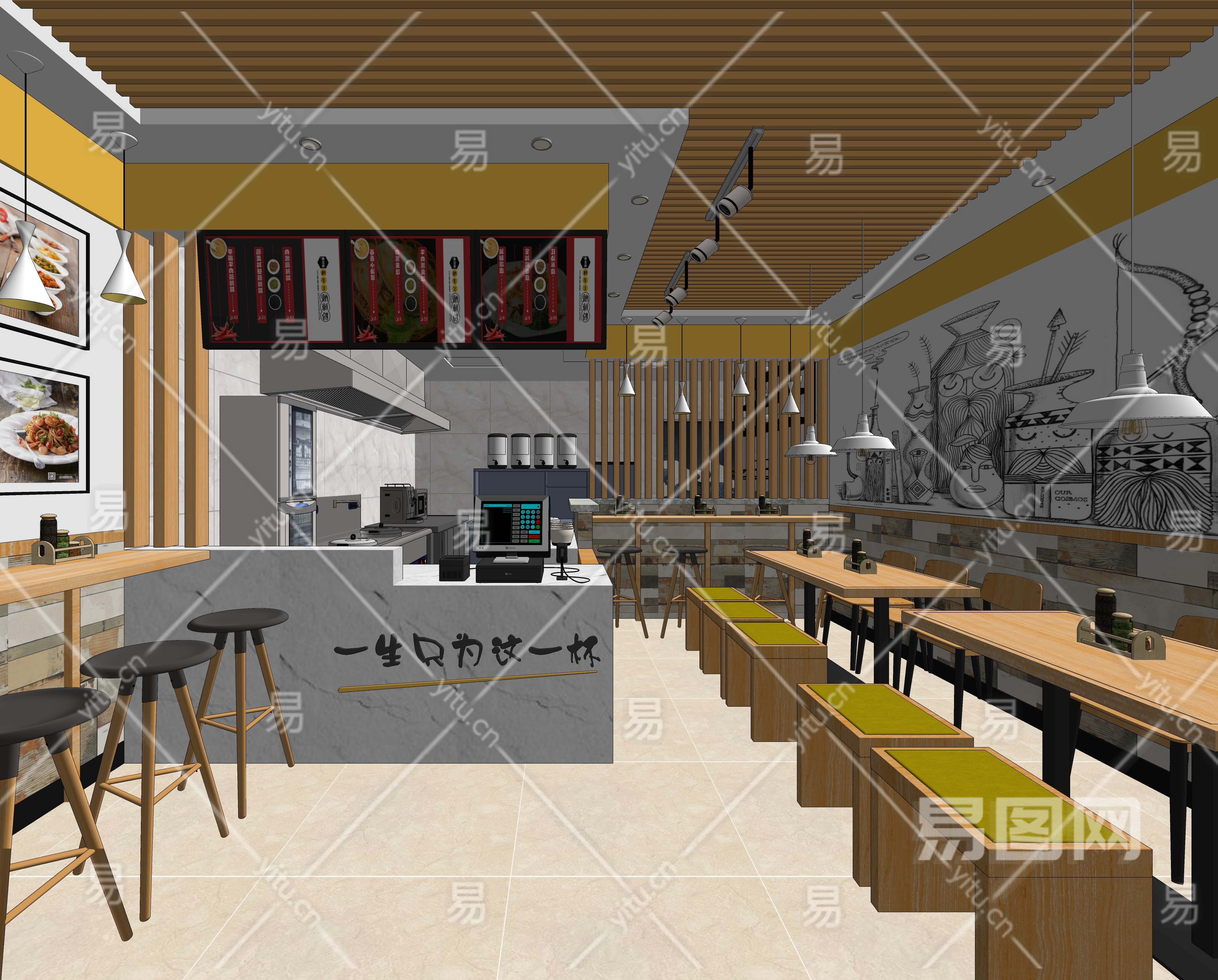 现代快餐厅SU模型下载