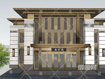 新中式售楼处外观SU模型下载